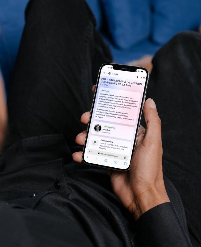 Tout est entièrement en ligne : cours, examens, projets et interactions avec les enseignants. Vous pouvez accéder à vos cours à tout moment, depuis n’importe quel appareil.